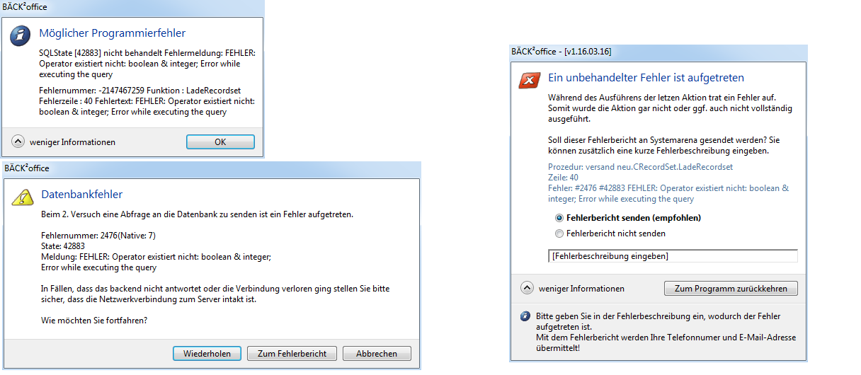 | Ich kann die Fehlermeldung nicht einmal anhand des Fehlerberichts nachstellen. Falls der Fehler bei euch reproduzierbar ist, müsste man es via Fernwartung versuchen zu prüfen. | |
