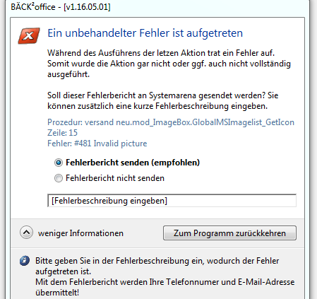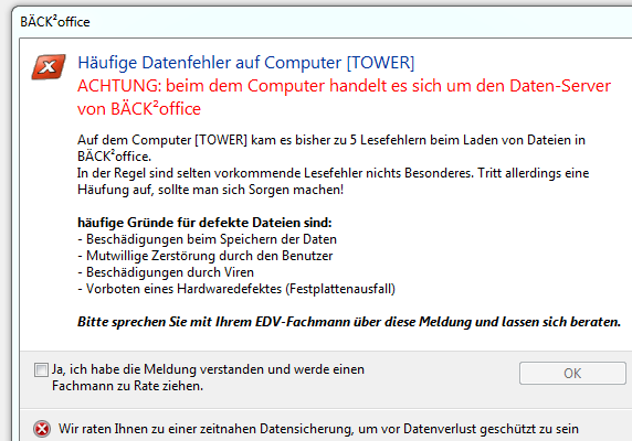 | Weitere Frage... kommt es immer wieder? Wenn JA Verzeichnis C:\BAECK2officeServer\Daten\Temp komplett leeren... ist es dann weg? | |