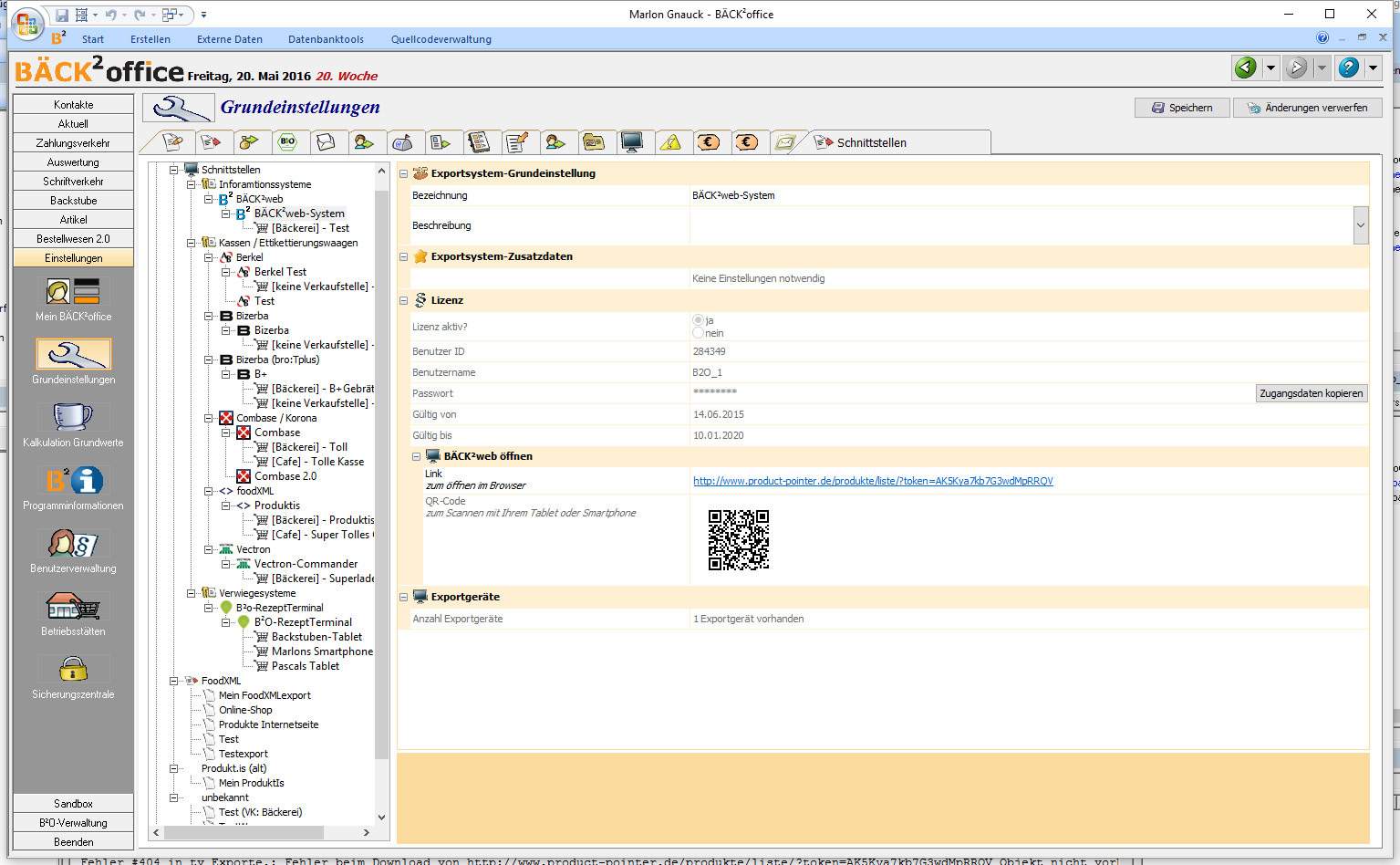 | 2017-06-14 12:38 | Entwicklung | Kategorie | Kassen - BÄCK²web => Grundeinstellungen - Schnittstellen - ArtikelExporte - BÄCK²web |